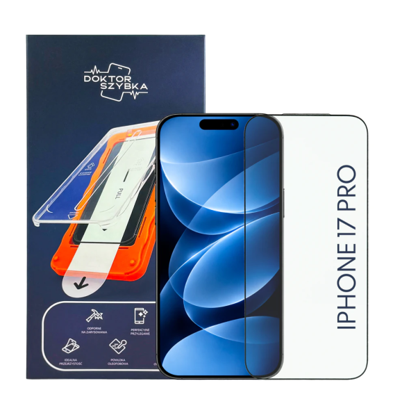 PANCERNE SZKŁO HARTOWANE iPHONE 17 PRO – 2.5D Full Cover HD + Aplikator